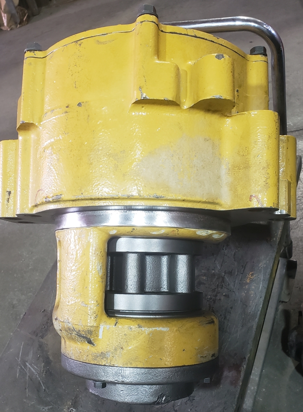 This is a Caterpillar 16G Grader Circle that we have in with the drawbar & moldboard for repairs & rebuilding. The teeth were worn & damaged so we cut the bad ones out & welded in some new segments. The next step is to weld the damaged & worn areas of the top surface & then machine the surface flat, smooth & to the proper height.