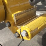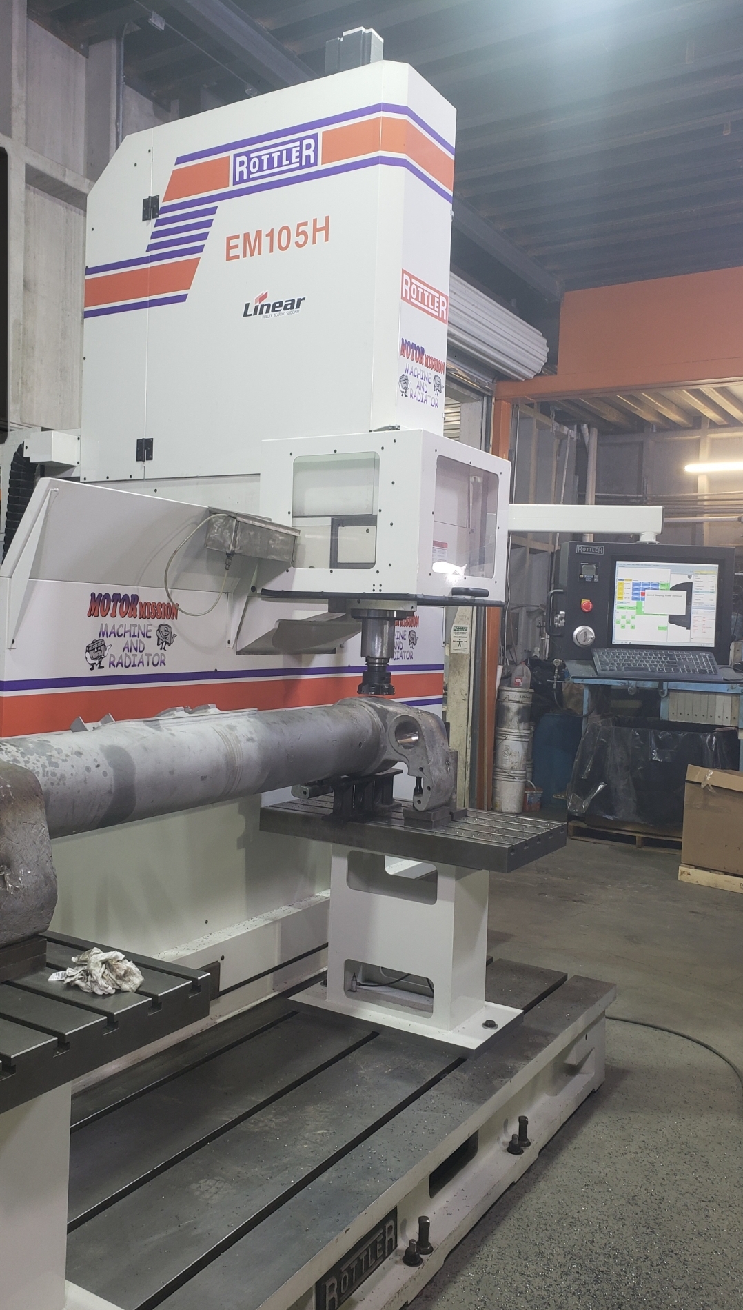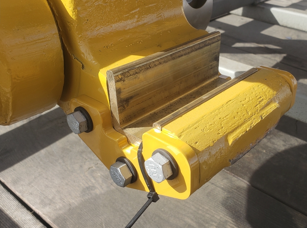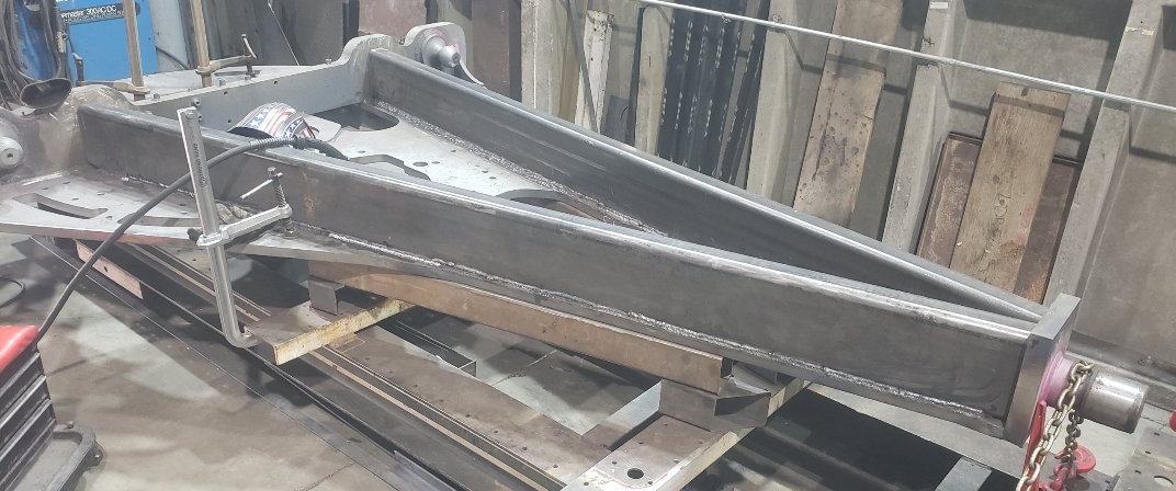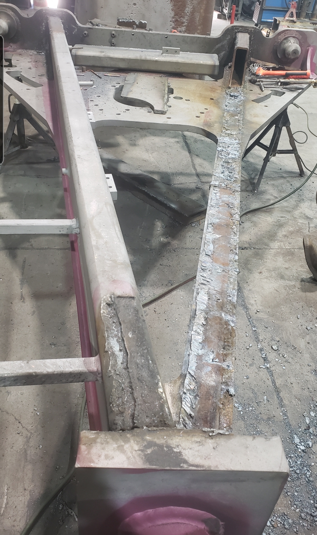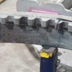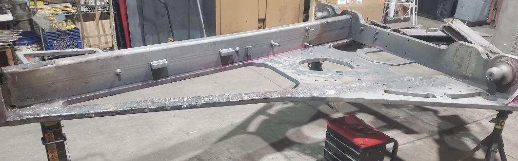 Here are some pics of a Caterpillar 18M3 grader circle, drawbar table and moldboard blade hanger bracket we did a complete repair & rebuild to. The main beams on the drawbar table were both cracked all the way through. We cut the main beams off, straightened the table & welded new beams in place. The circle drive motor was completely rebuilt with a new pinion gear, splined mainshaft, worm gear & clutch pack. The circle assembly had several teeth worn down to a point so we cut the bad teeth out & welded in six new segments of teeth. The moldboard blade hanger bracket was worn in the bores as well as the rectangle slots where the brass shims seat that the moldboard/blade slide in. So we machined the bores true & round & the rectangle slots true, flat & square. We then welded the bores & the surfaces of the rectangle slots up & then machined them back to spec. After we got the complete assembly all put back together we connected it to our hydraulic setup to test run all its functions to ensure it operates smoothly & as it should. We are here & ready for all your heavy equipment parts repair, welding, boring, machining & rebuilding needs.