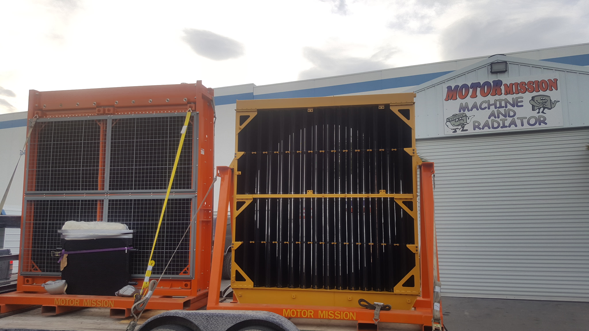 Here’s a couple of large mining equipment radiators we rebuilt & delivered to our mining customers in northern Nevada. The yellow radiator is a Caterpillar 793C haul truck folded core style radiator & the orange radiator is off of an Atlas Copco Pit Viper 351 drill rig. The Pit Viper radiator is a low temp & hi temp combo radiator with MB (mechanically bonded) radiator cores. For all of your big & large radiator needs we are your #1 Las Vegas radiator shop for rebuilding & repair.