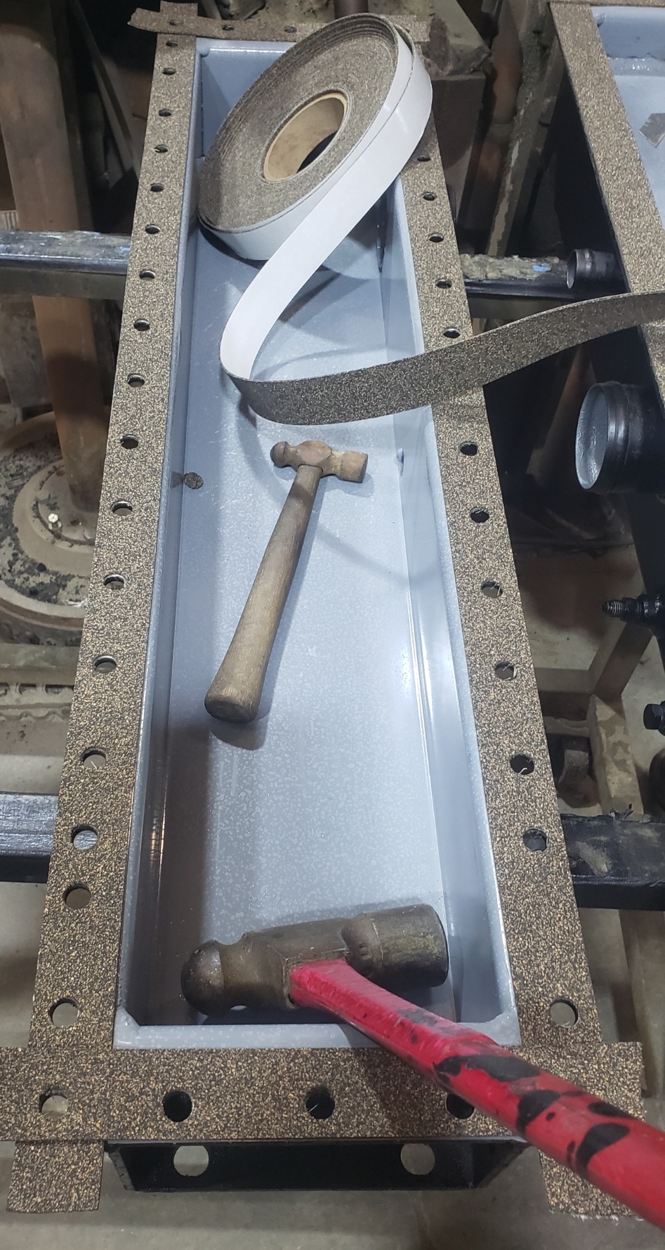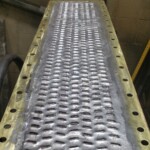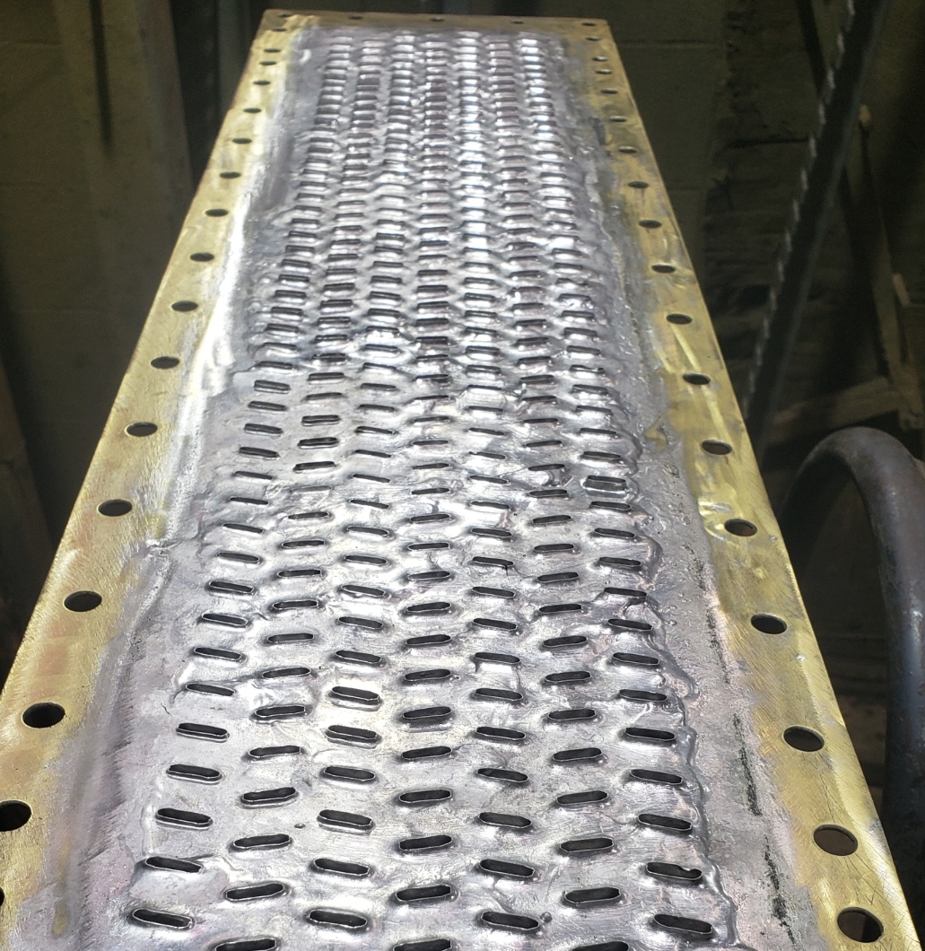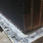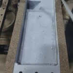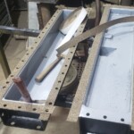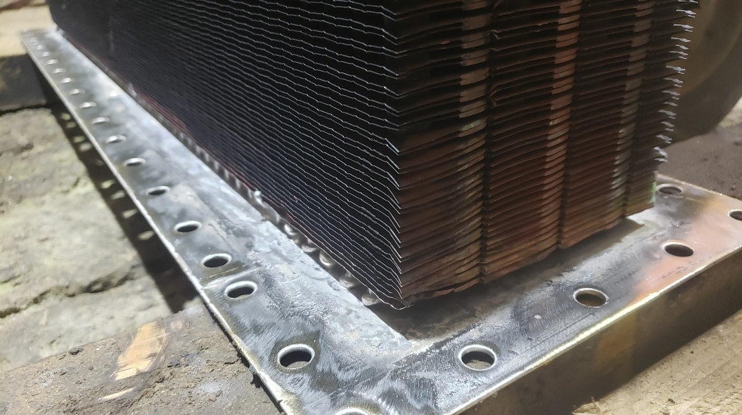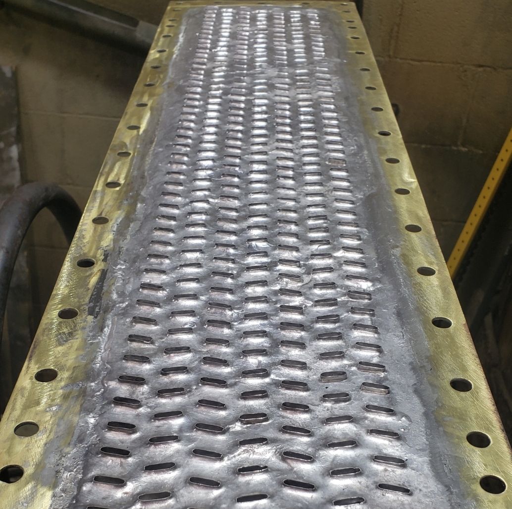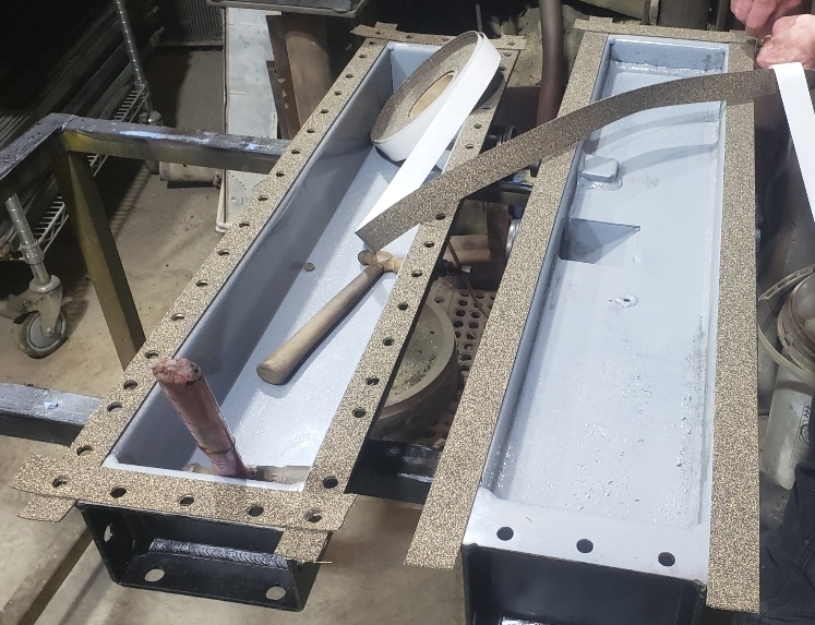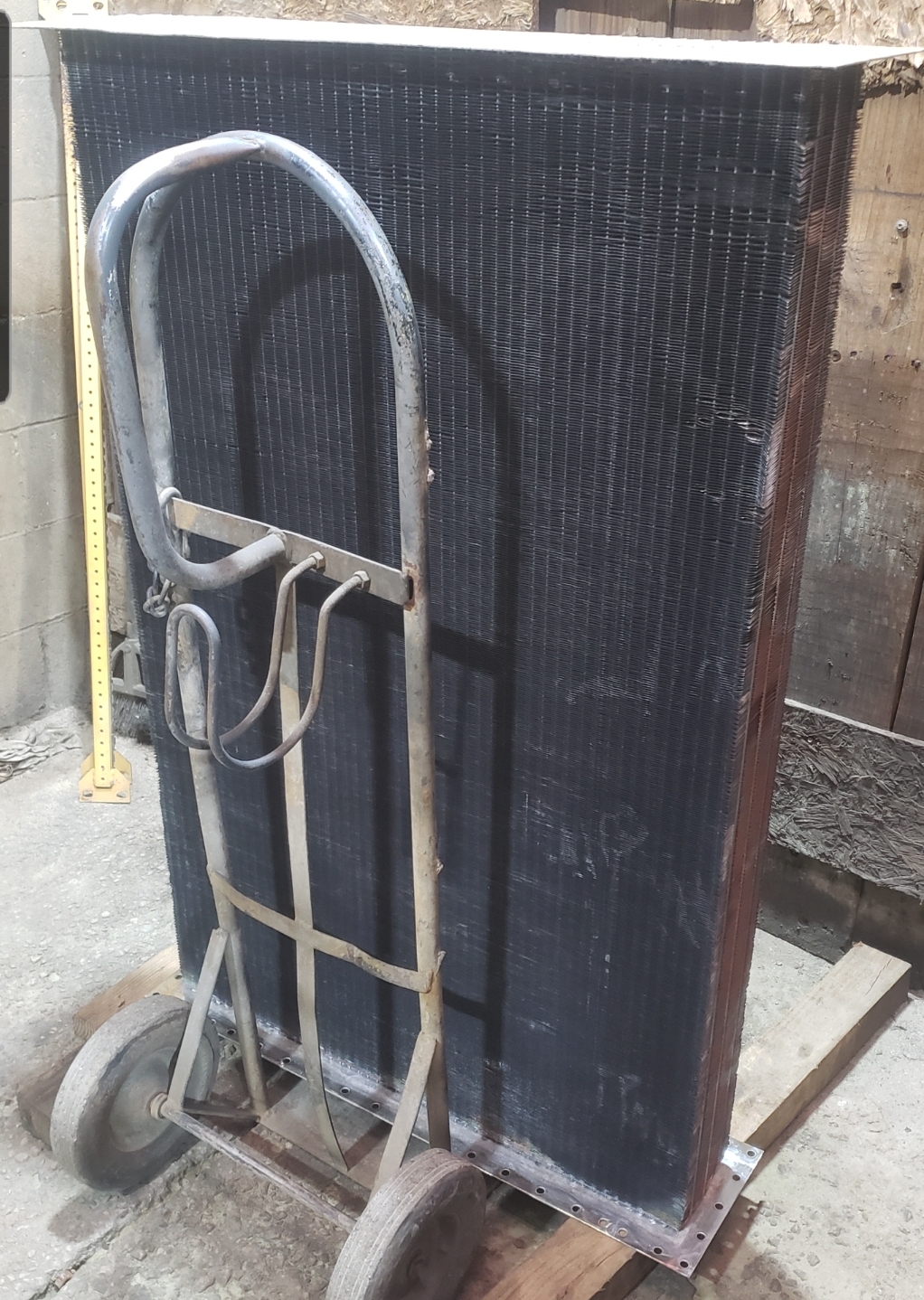 Here are some before & after pics of a 988 Caterpillar loader radiator we overhauled. The radiator came in for an overheating issue as well as a leak. We completely disassembled the radiator so we could rod out all of the canted tubes in the radiator core. The tanks & side braces got thermal cleaned & blasted. We made some new rubber impregnated cork gaskets to seal between the headers of the core & the radiator inlet & outlet tanks. A final pressure test insured that the radiator is leak free & ready for another round of service.