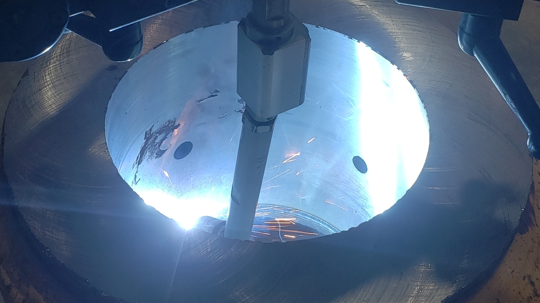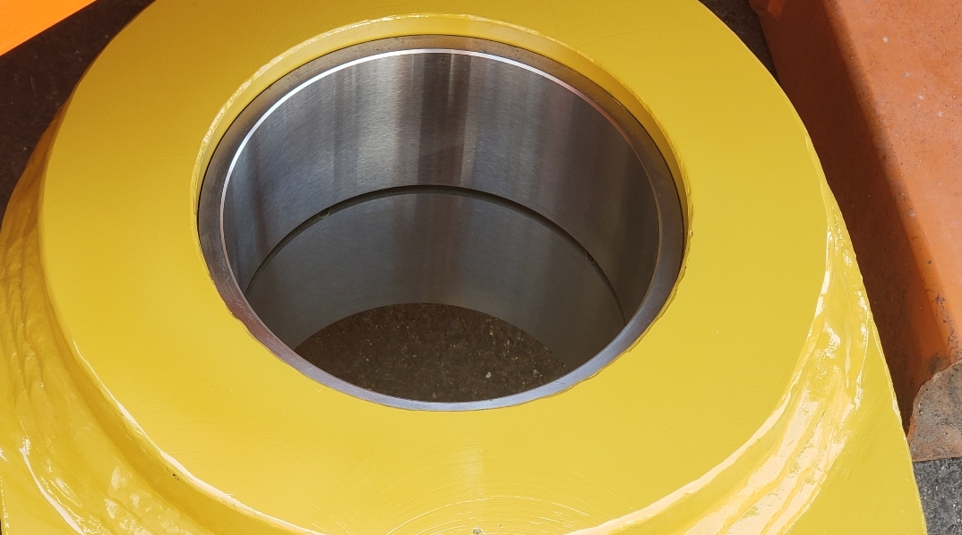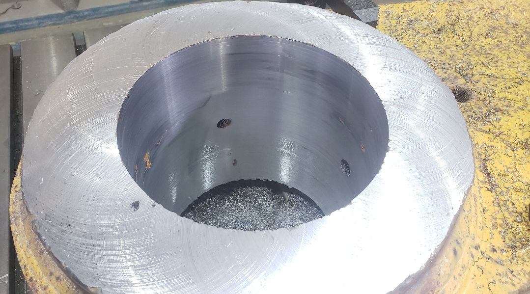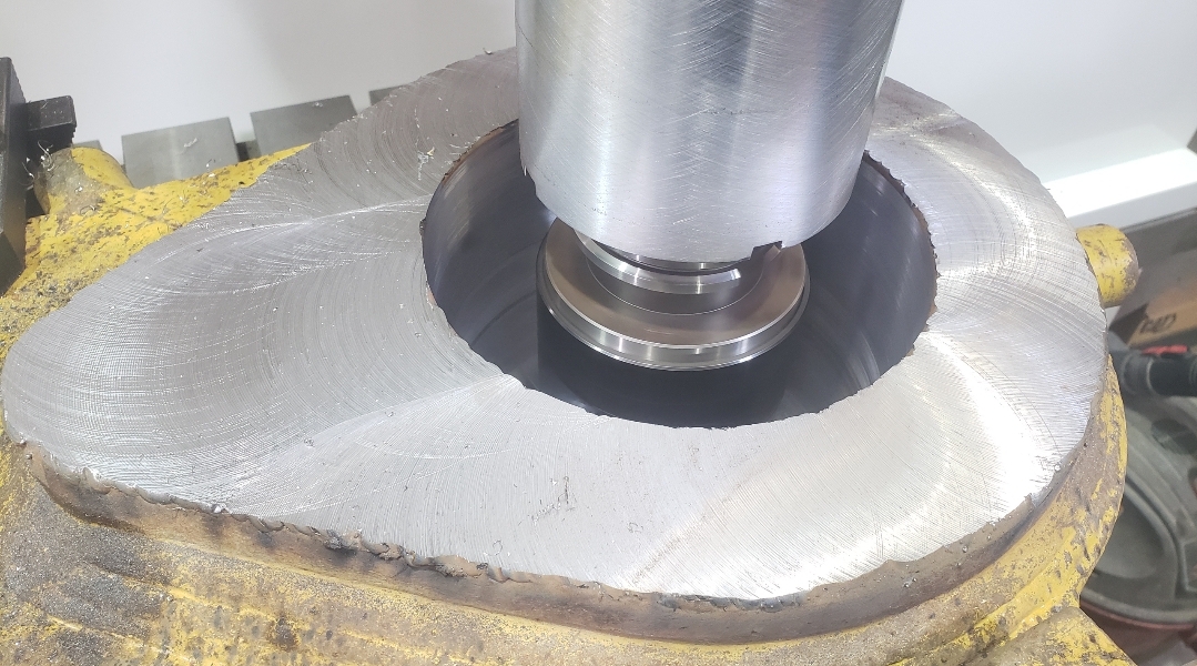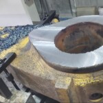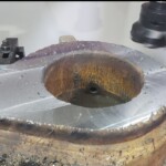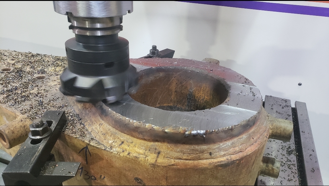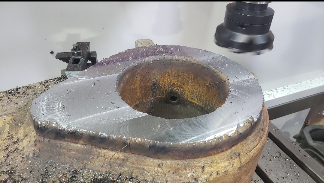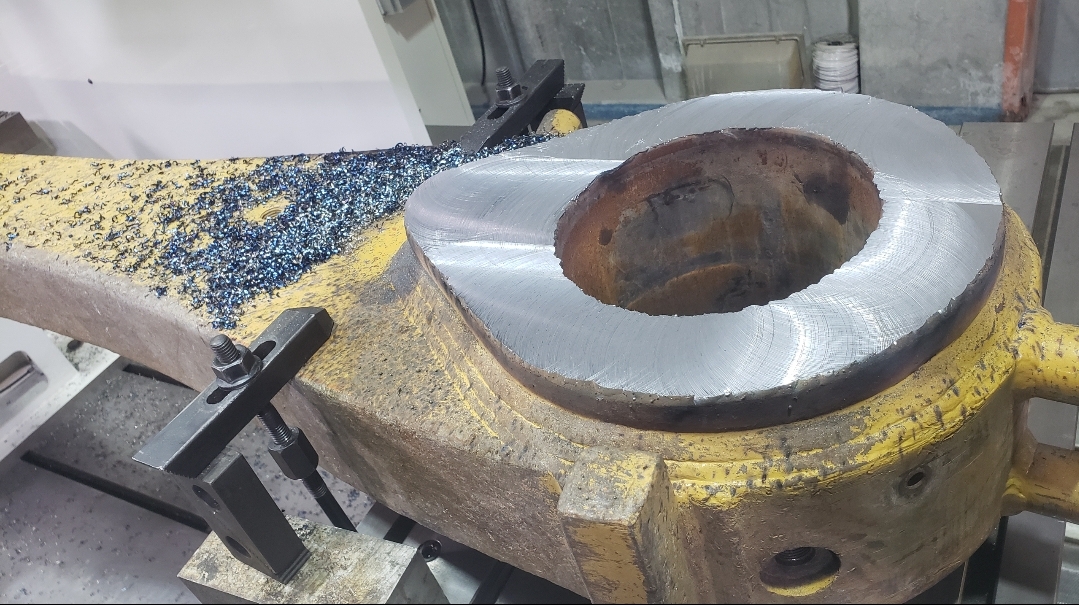 Here’s some pics of a Caterpillar 994H dogbone link that we repaired. The bores on both ends of the dogbone had to be machined, or bored, oversize. We then welded the bores with our automatic bore welding setup fixture. After the welding was done on the bores we then machined the bores back to the spec size for the installation of new bushings. The surfaces on both sides of each bore were also worn so they had to be machined down, welded back up & then surfaced, or milled, back to the correct thickness.