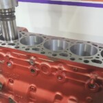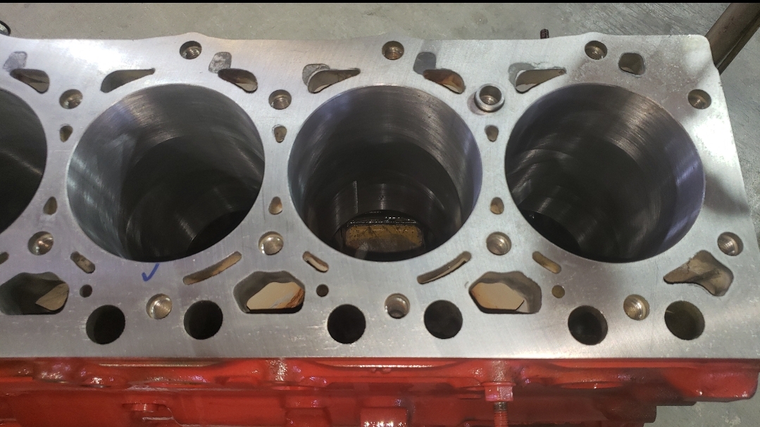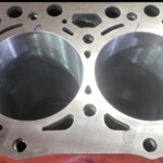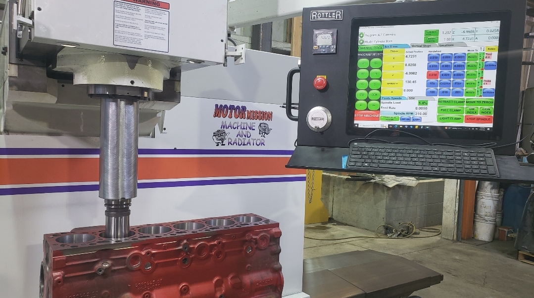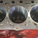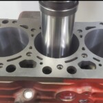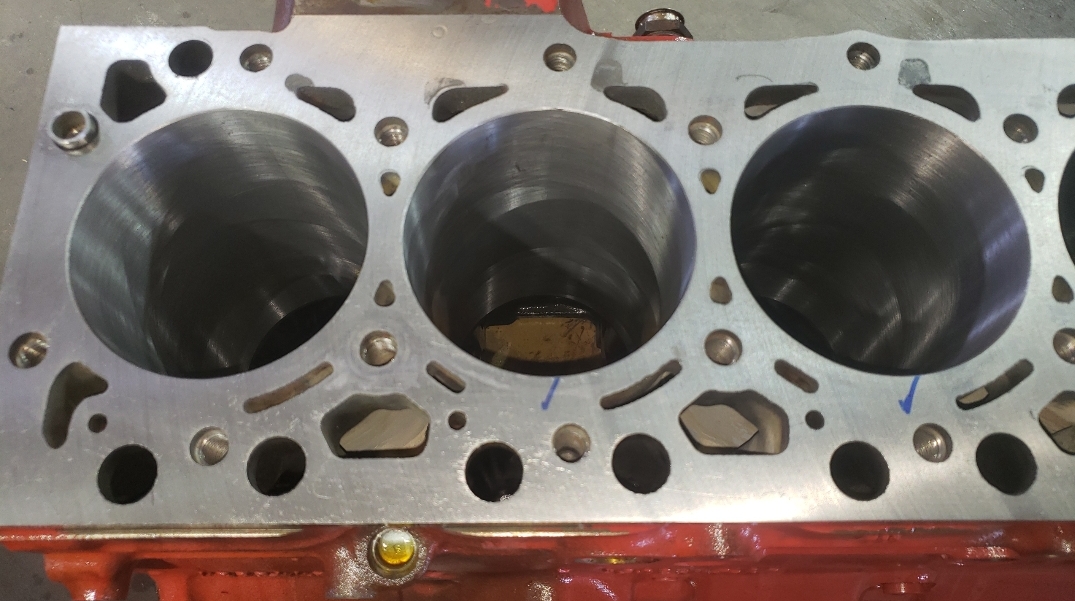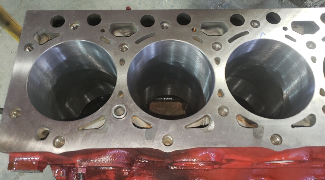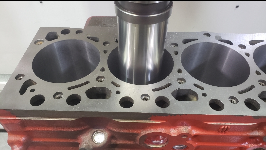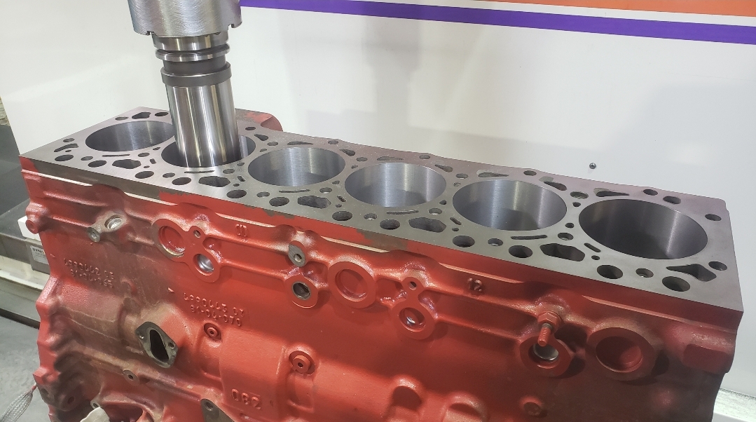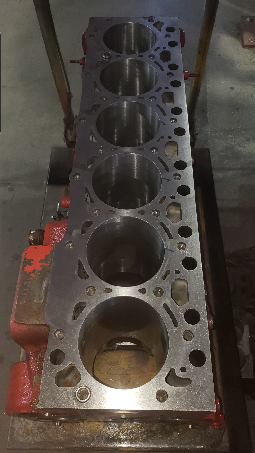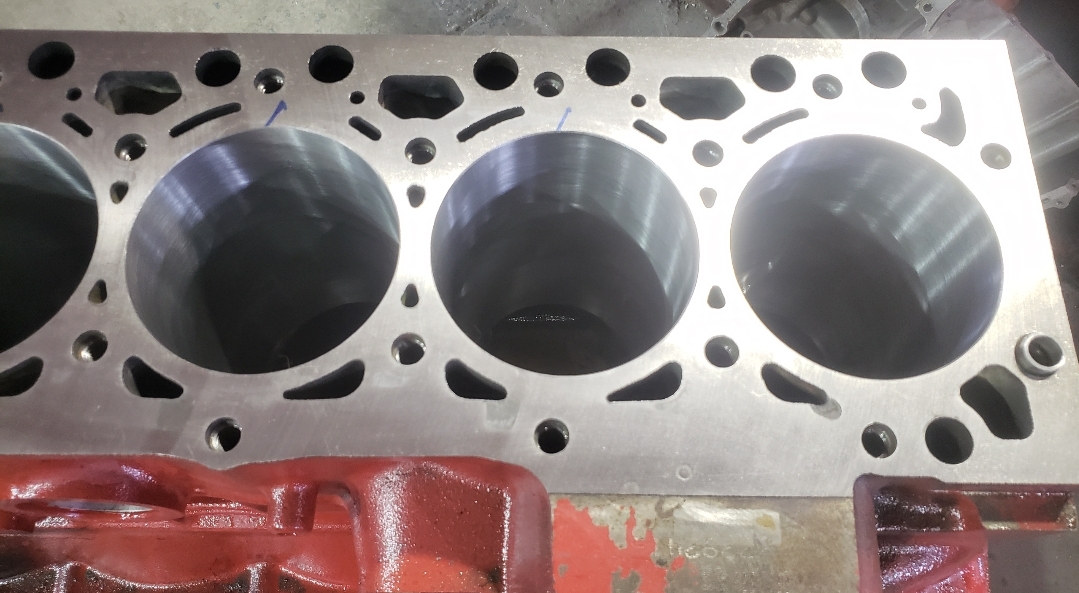 Here are some pics of a Cummins ISB 6.7 liter diesel engine block we had in for machining. The cylinders had some scratches & wear so we bored them oversize by .020 (twenty thousandths). The deck surface had some imperfections so we machined, or surfaced, the top of the block flat & square. We then mounted the block in our cylinder hone & installed a torque plate to simulate the cylinder head being installed on the engine. We finished the cylinders to size in the honing machine & brushed them to final size with plateau honing brushes. The cylinders & deck are all machined & the block is ready for assembly.