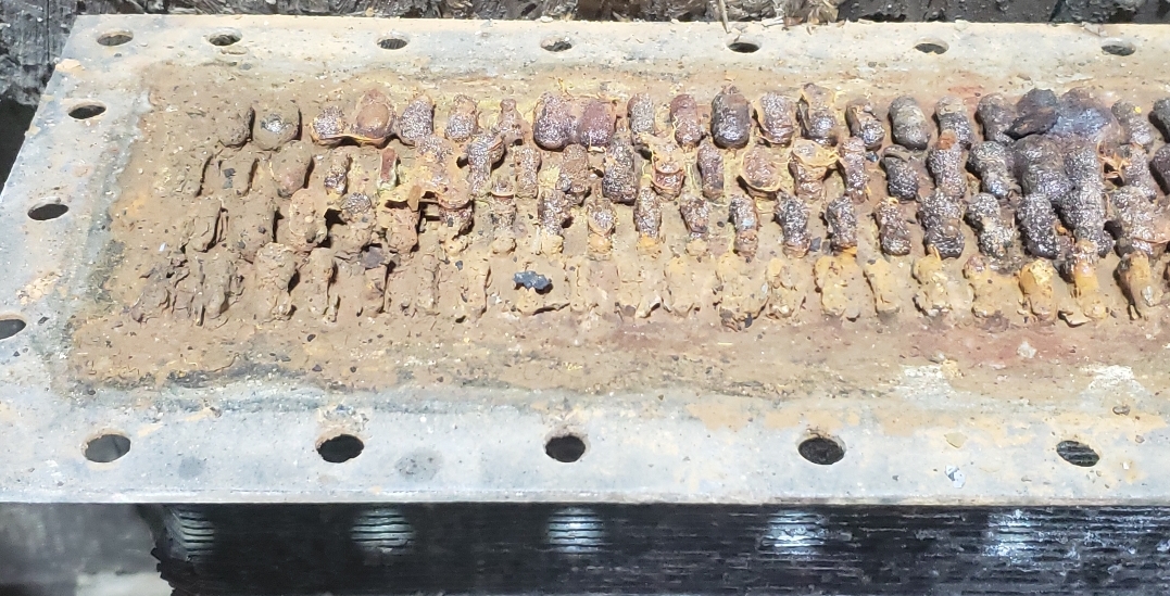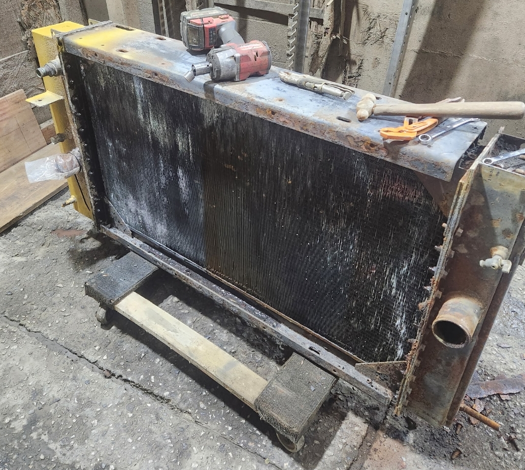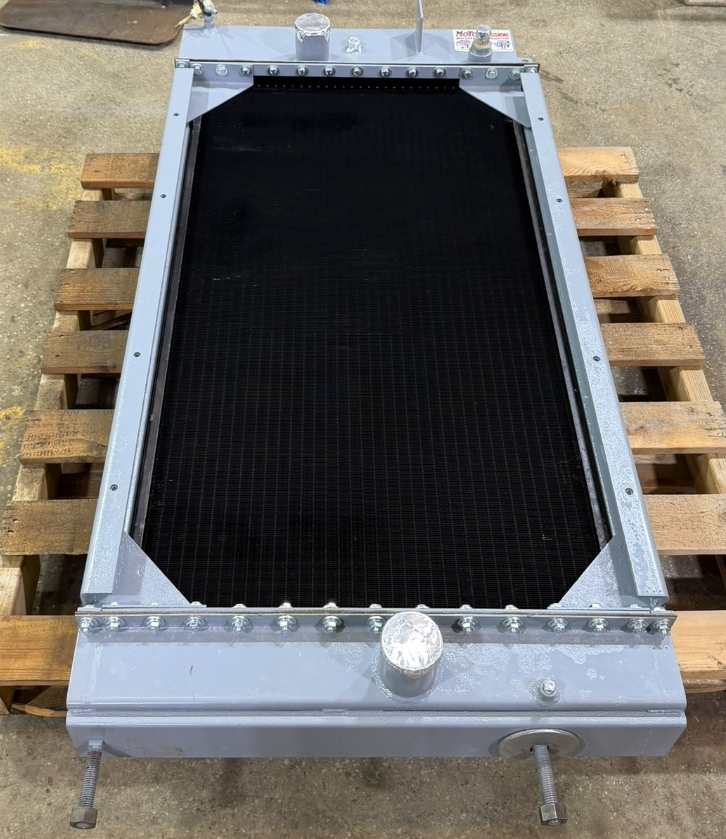 Here are some before & after pics of a bolt-on radiator that came in for an overhaul. The radiator is off of a John Deere machine which was parked after overheating & damaging the engine. We got the radiator disassembled & all the tubes of the core were plugged solid. We recommended a recore to our customer along with complete reconditioning to the tanks & side frames. We cut access holes in the top tank so we could blast the inside of it & get it absolutely clean. We then assembled the tanks & side frames to a new heavy duty high efficiency core with new gaskets, nuts, bolts & washers. A final pressure test ensured the radiator has zero leaks & that it’s ready to keep the new engine cool & the machine running for another round of service.