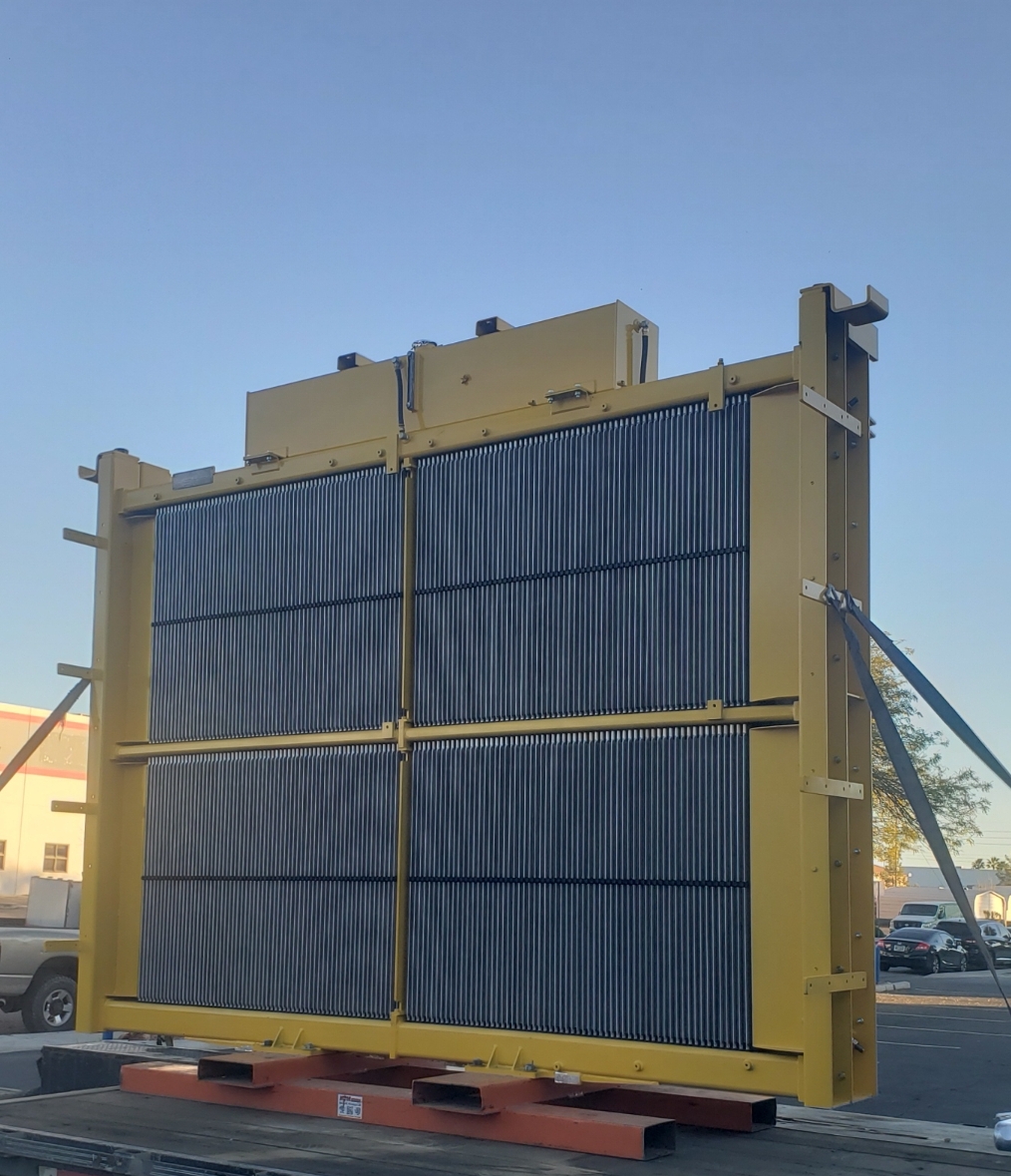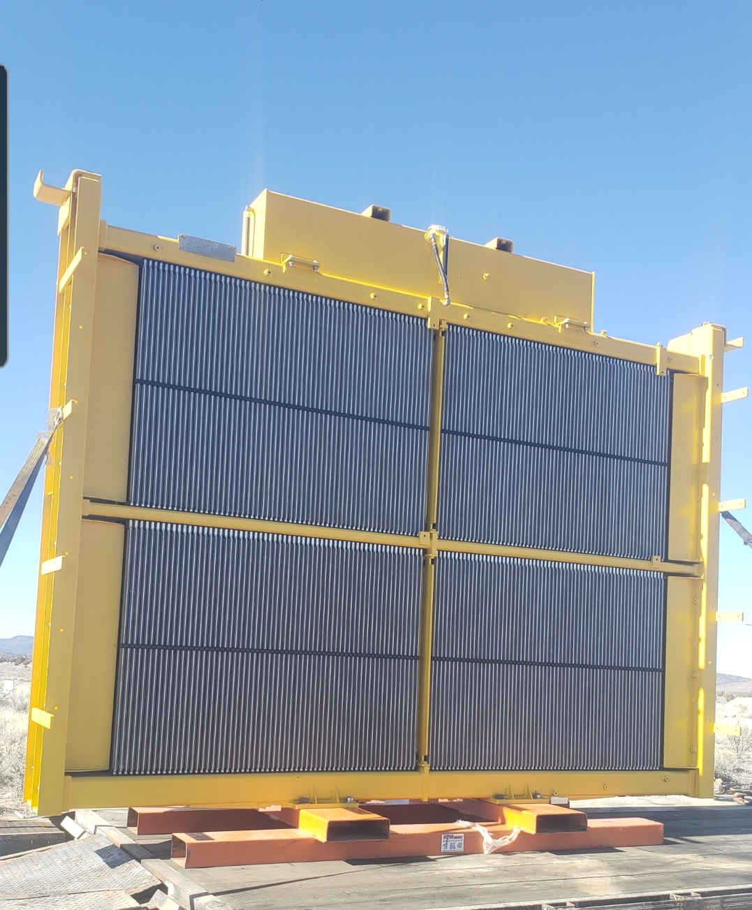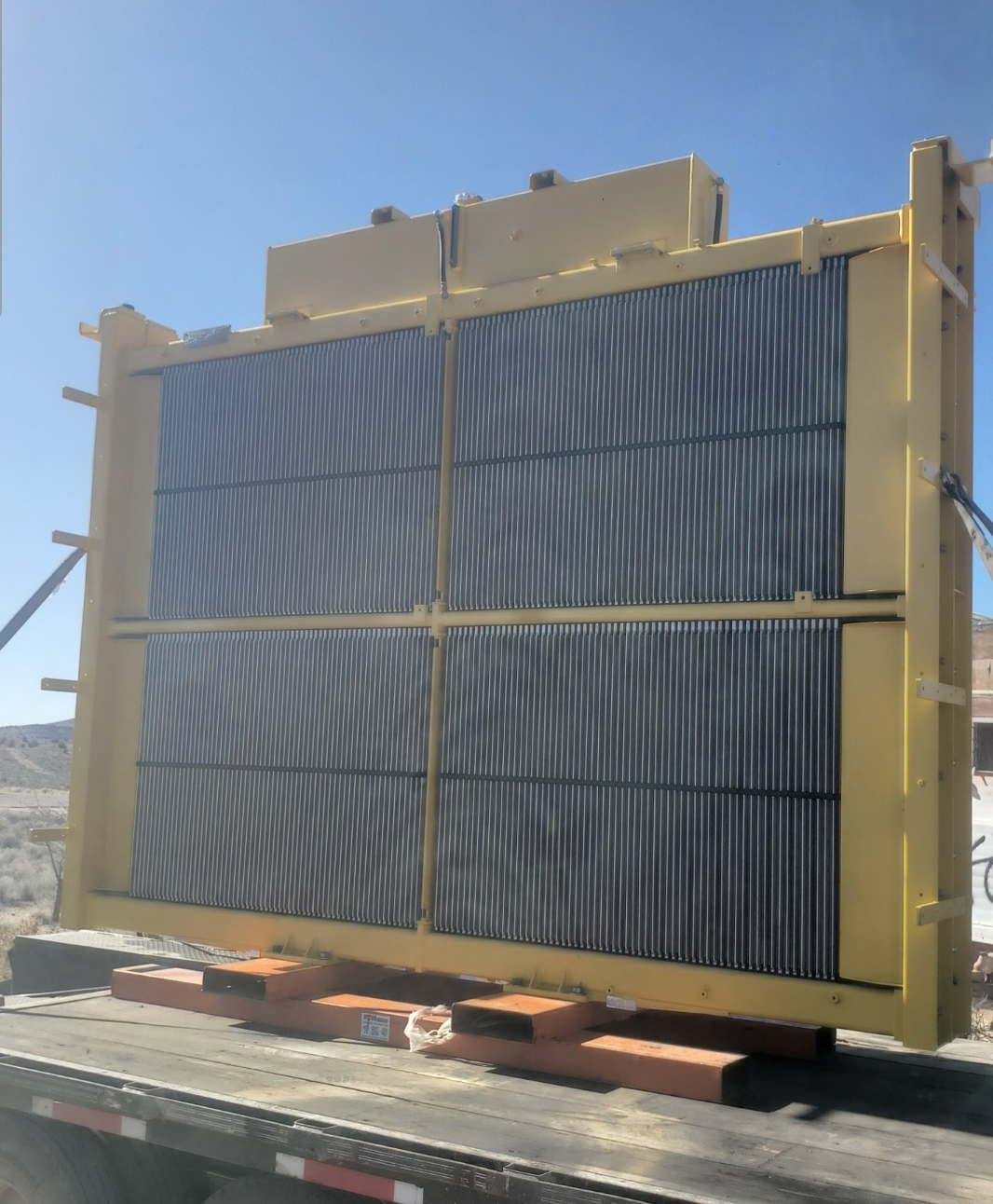 Here are some pics of a Komatsu 930E-5 haul truck radiator that came in leaking for an overhaul. This radiator is a MESABI with the aluminum tubes option. Though we prefer & recommend the copper tubes we gladly service the aluminum tube radiators when we can. We found the leak coming from a crack in one of the aluminum tubes. There were a fair amount of tubes that appeared to also be compromised. We ended up cleaning & reconditioning all the tubes in the three row HTC (High-Temp Radiator) & reinstalling them into all new upper & lower rubber grommet seals. The two row LTC (Low-Temp Radiator) ended up getting a full set of new tubes which we installed into all new upper & lower rubber grommet seals as well. A final pressure test & assembly puts this radiator ready for another round of service. For all your radiator service & rebuilding needs please don’t hesitate to reach out to us.