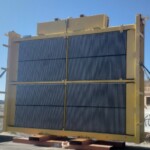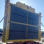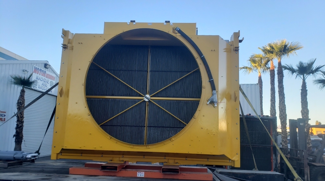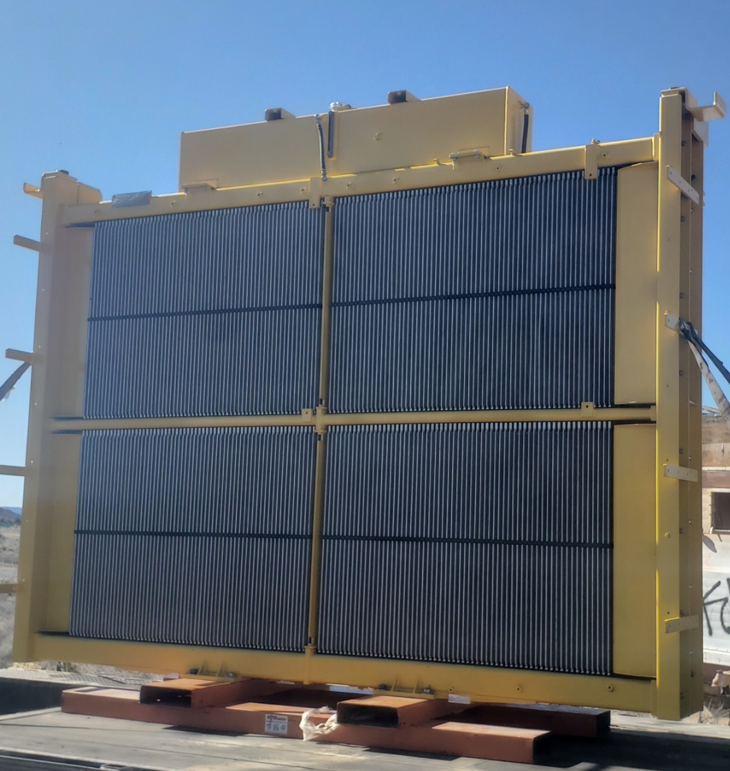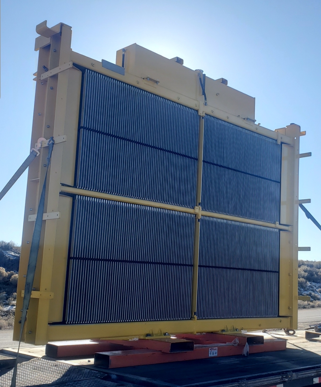 Here are some pics of a Komatsu 930E-5 haul truck radiator that came in leaking for an overhaul. This radiator is a MESABI with the aluminum tubes option. Though we prefer & recommend the copper tubes we gladly service the aluminum tube radiators when we can. We found the leak coming from a crack in one of the aluminum tubes. There were a fair amount of tubes that appeared to also be compromised. We ended up cleaning & reconditioning all the tubes in the three row HTC (High-Temp Radiator) & reinstalling them into all new upper & lower rubber grommet seals. The two row LTC (Low-Temp Radiator) ended up getting a full set of new tubes which we installed into all new upper & lower rubber grommet seals as well. A final pressure test & assembly puts this radiator ready for another round of service. For all your radiator service & rebuilding needs please don’t hesitate to reach out to us.