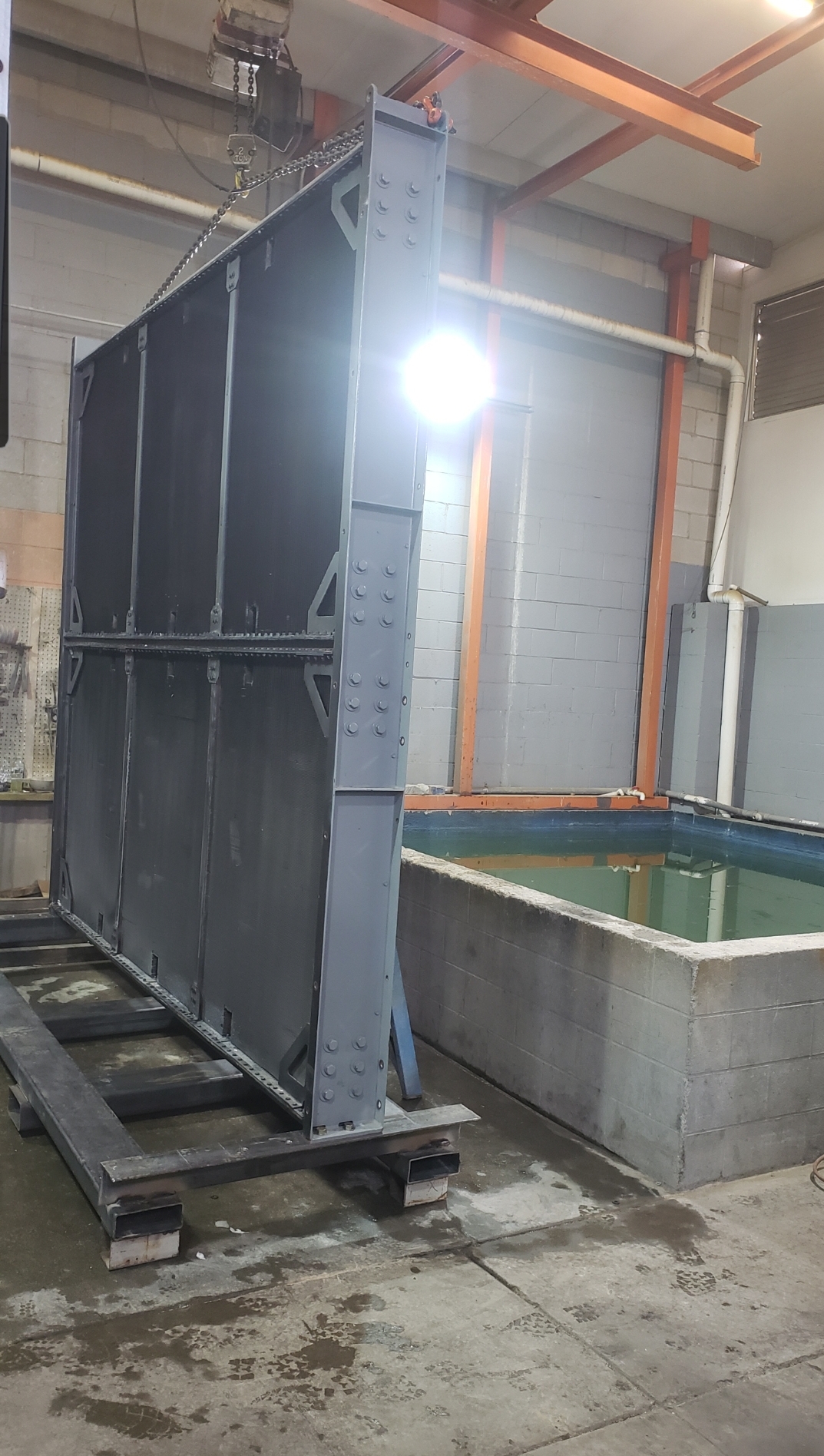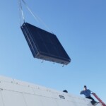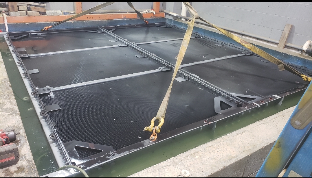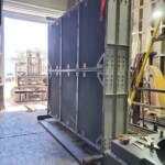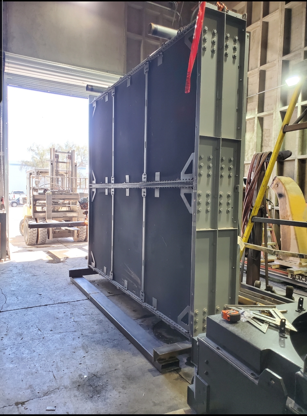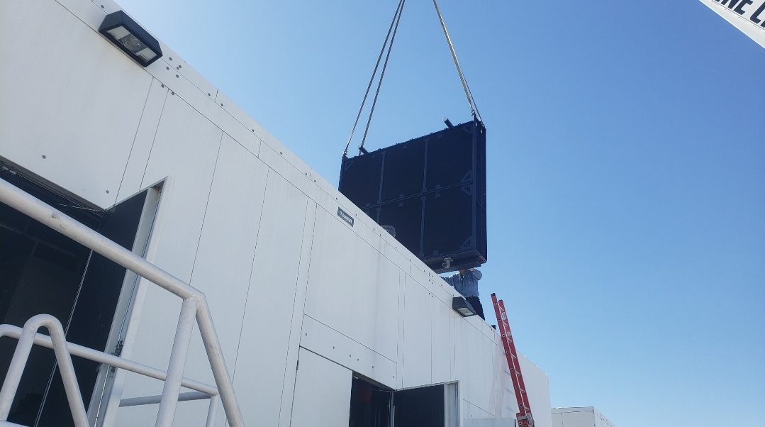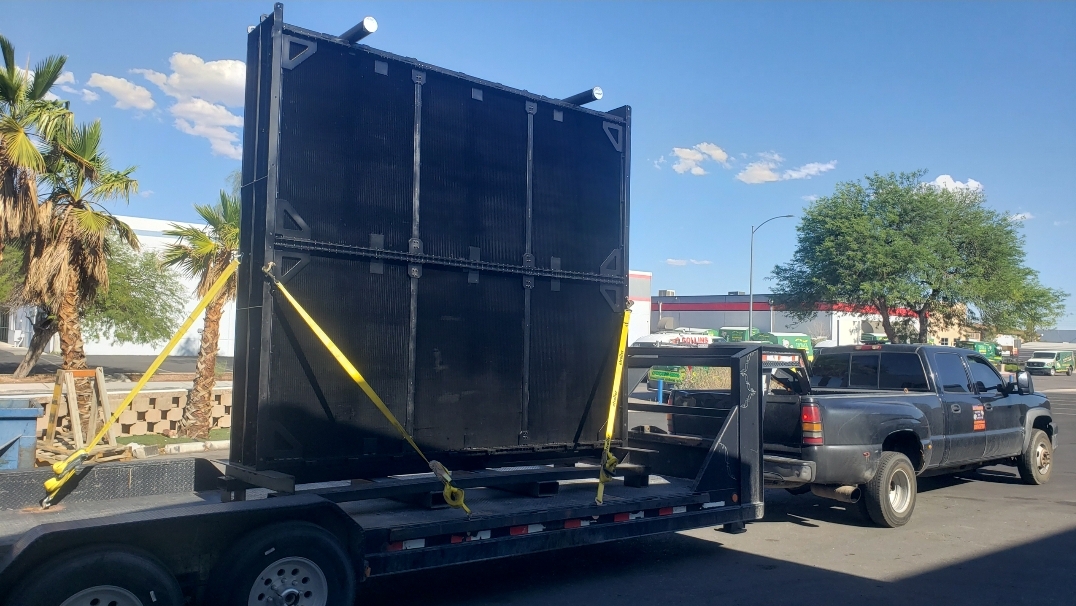 Here’s some pics of a large backup generator radiator we rebuilt. The radiator consists of a Hi-Temp & Lo-Temp Dual Radiator assembly. This radiator mates up to an MTU DS3250 standby generator which is powered by a V-20 diesel engine. Each radiator half is made up of six individual conventional radiator cores. That’s twelve total cores which is equivalent to rebuilding twelve semi truck radiators. Albeit each of these cores is a bit larger than the typical semi truck radiator. Each of the twelve cores received a rod & repair & extensive cleaning in our ultrasonic cleaning tanks. We delivered the radiator to the site of the generator where the crane lifted the radiator off of our stand & lowered it straight into the generator enclosure. We helped with the setting of the radiator & assisted with bolting it back in place.
