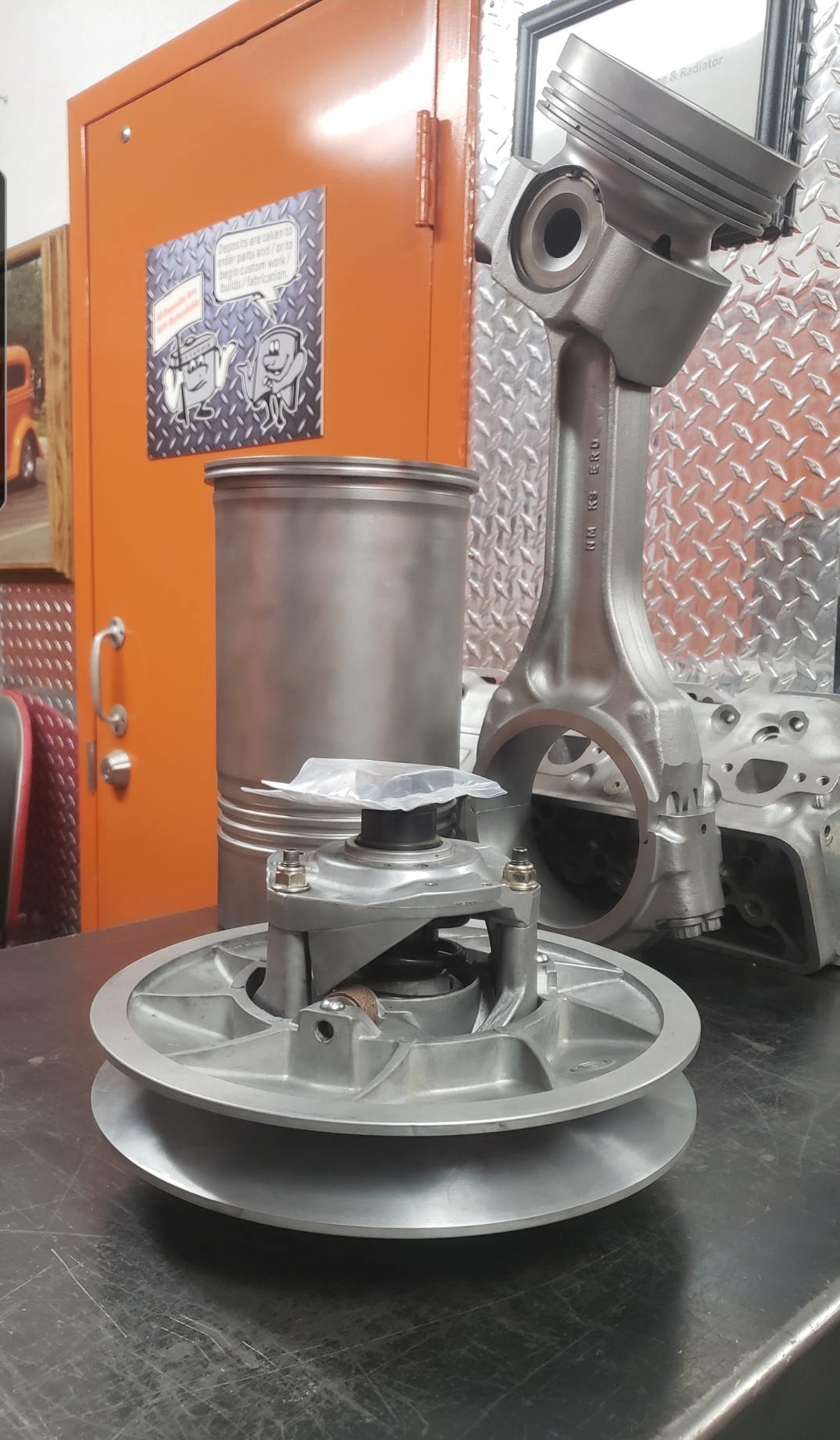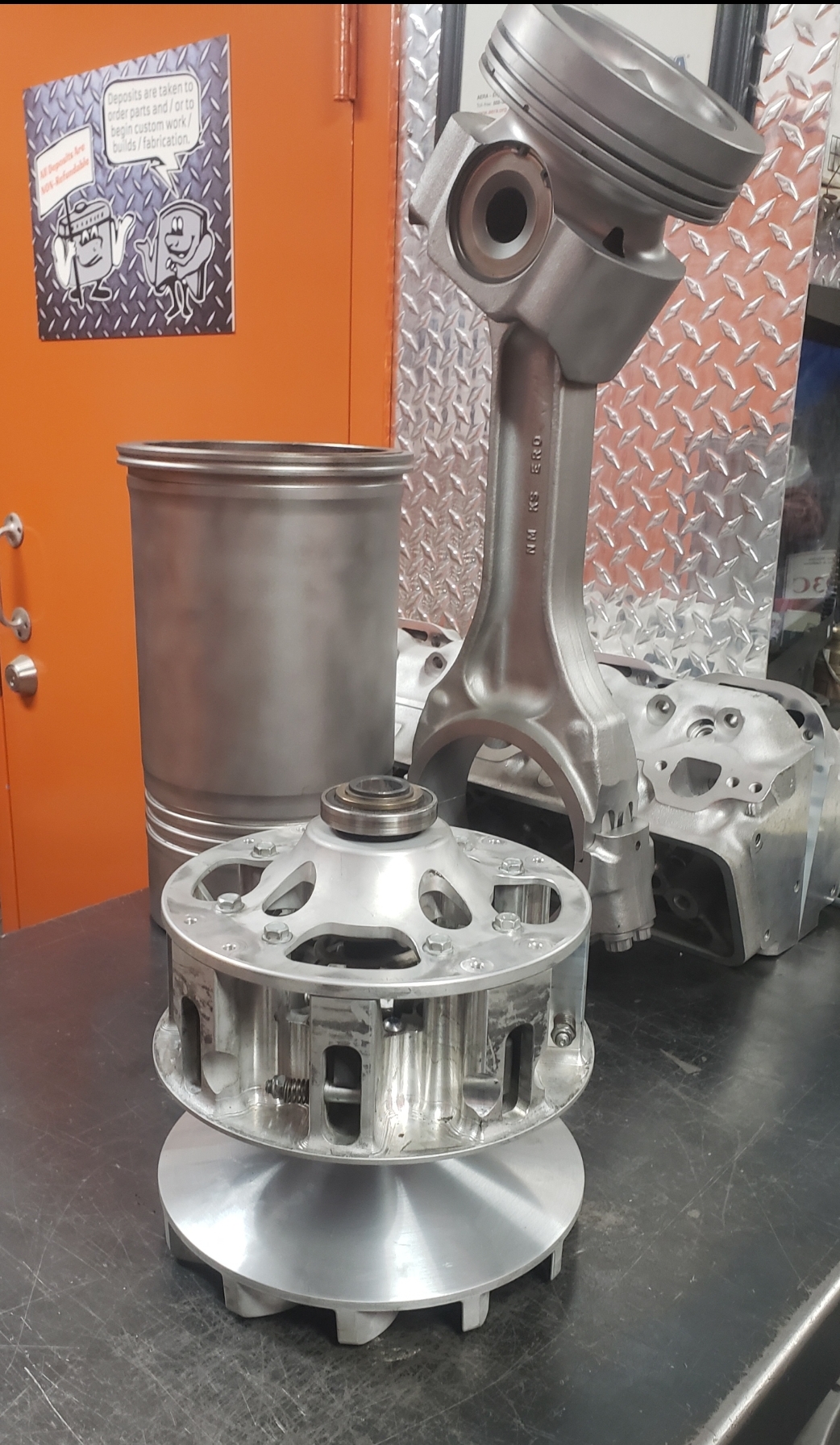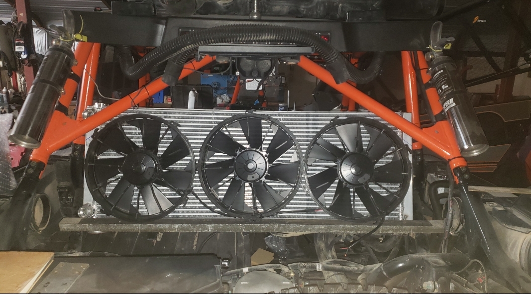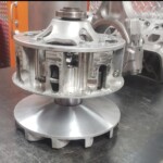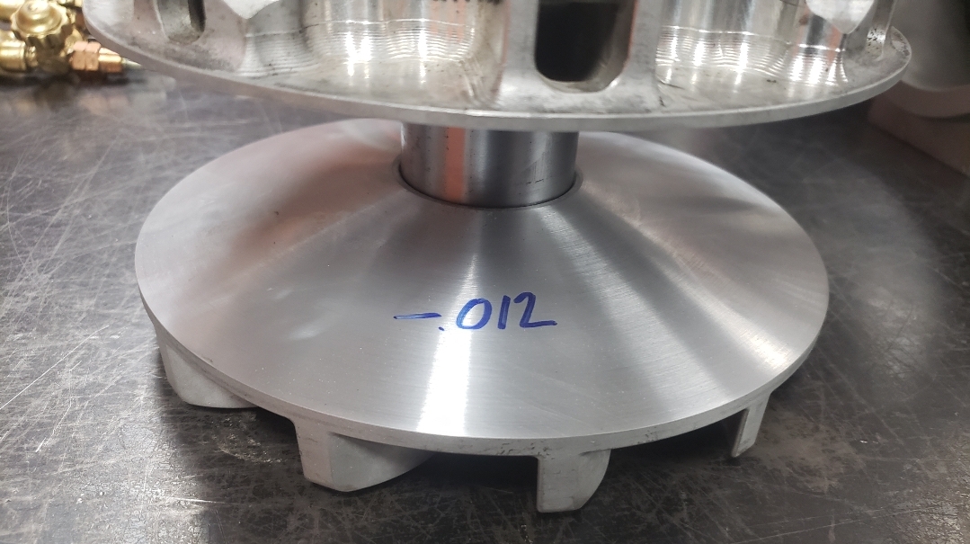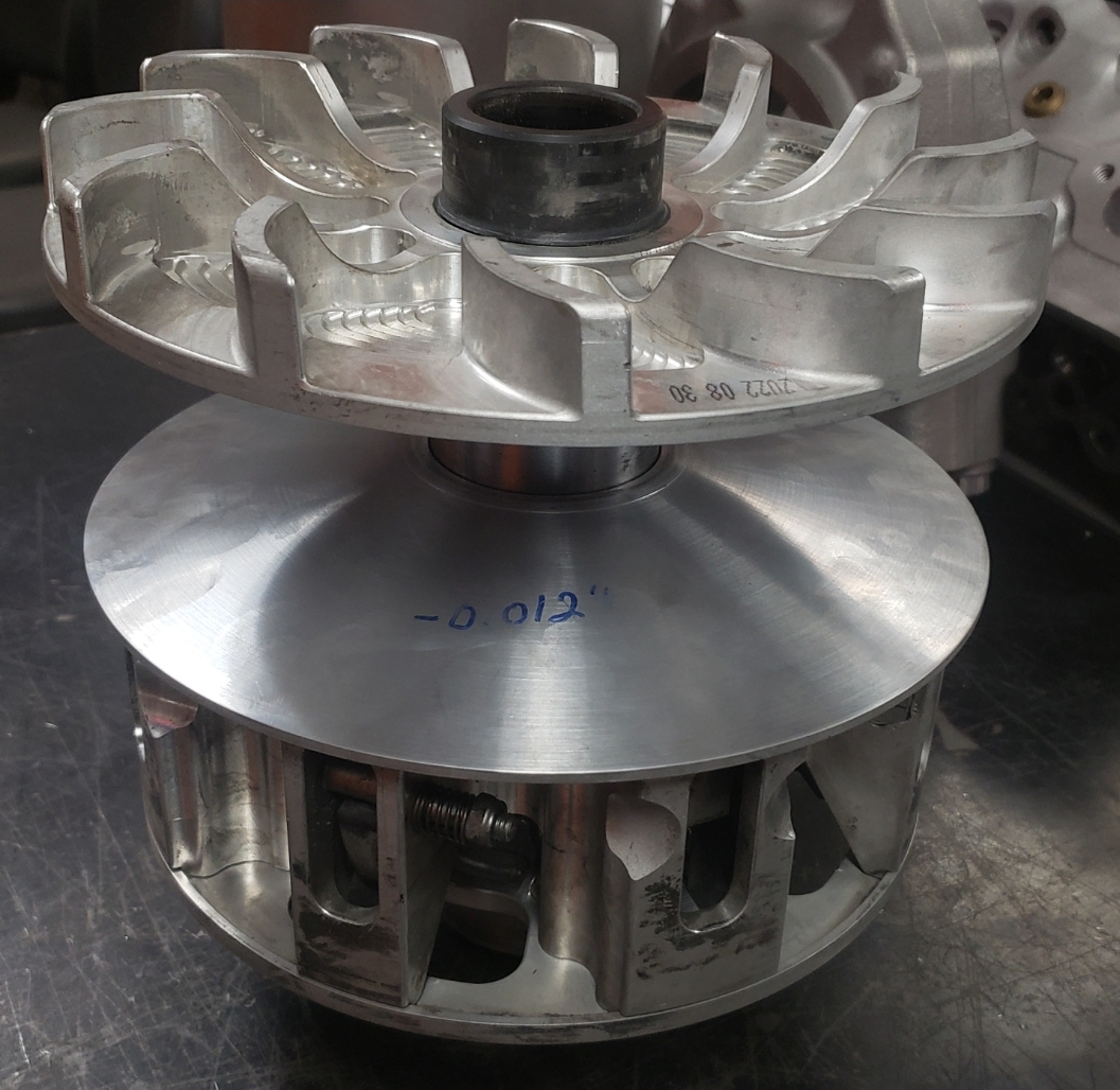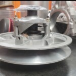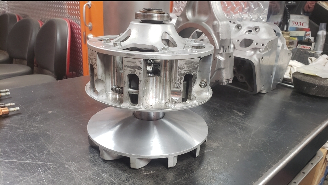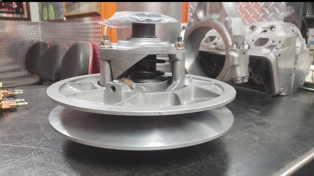 Here are some pics of some parts we’ve been machining & working on for the Speed UTV’s. We have come up with our own version of a manual alternator belt tensioner. We only have a couple hundred miles on it right now but so far it appears to be holding up well & the belt is staying where it should be as the alternator is providing solid voltage output thus far. We’ve also built our own version of a CAC (Charge Air Cooler) or air-to-air cooler, radiator & engine oil cooler stack that is working phenomenal so far. The highest temp we seen for inlet air Temps so far is 93° with coolant temps regulating between 157° & 161° & the engine oil temps holding steady in the 180’s. This is with three 12 inch electric fans. We’ve only been testing without a windshield so far but it’s looking positive to start testing with a windshield installed. We’ve been seeing a fair amount of barrel shaped wear to the faces of the Primary & Secondary clutch faces, or sheaves, so we’ve been machining the clutches to provide a flat & smooth surface for renewed & improved belt engagement.