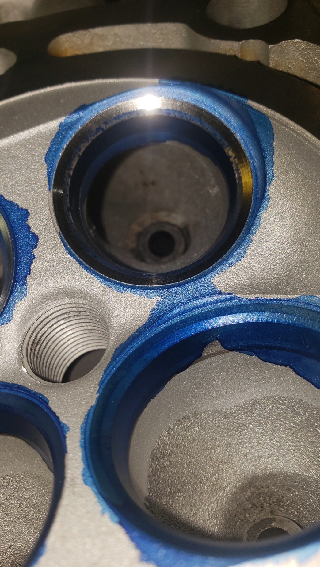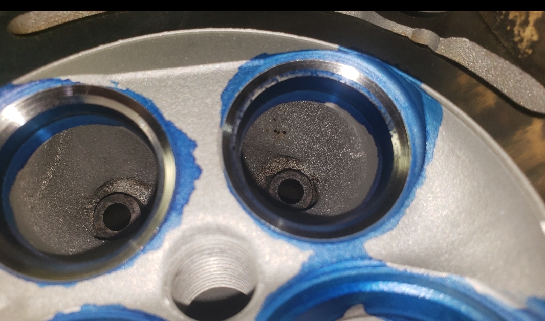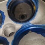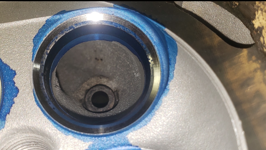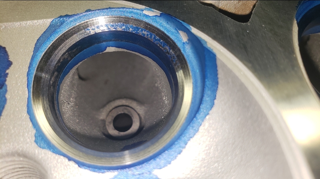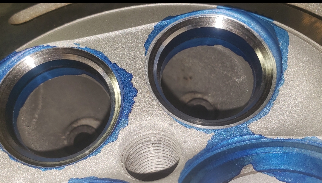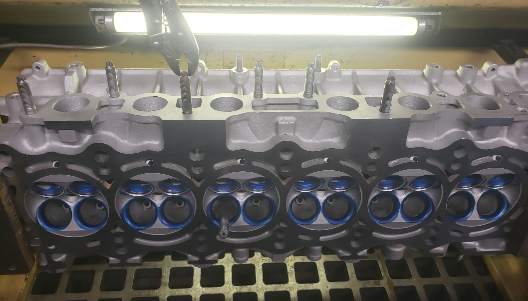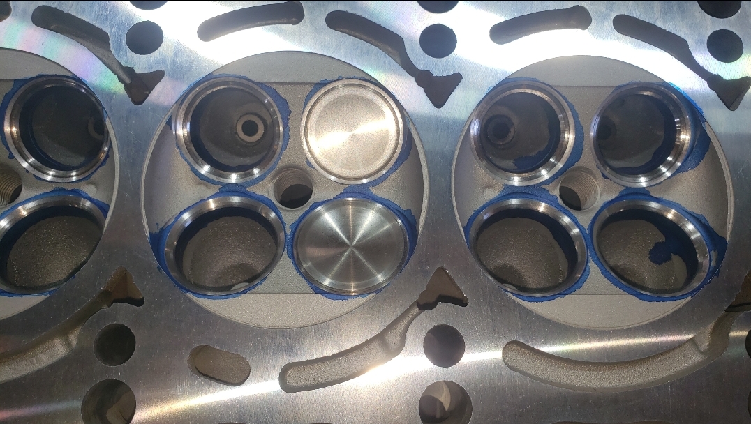 Here are some pics of an aluminum inline six cylinder Toyota 2JZ cylinder head that we did a three angle valve job & surface to. We painted the valve seats with some blue Dykem before machining them so we could better see when they were cleaned up. A closer look at some of the pics shows how bad the seats were pitted & corroded. We mounted the head in our Tobin-Arp seat-and-guide machine & machined the seats with our three angle Sunnen valve seat cutters. For surfacing the surface, or deck, we mounted the head on our Rottler multipurpose CNC boring & milling machine. For all your engine & cylinder head machining needs please don’t hesitate to contact us. Jimmy@MotorMission.com